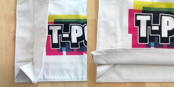 Même chose pour le bas du sac : Stanley/Stella a ajouté une double couture pour en augmenter le volume et le rendre de nouveau plus robuste, tandis que sur le Jassz, il n’y a pas de couture dans le fond du sac mais uniquement sur les cotés. Vous pouvez également constater sur cette photo la différence de coloris entre les deux.