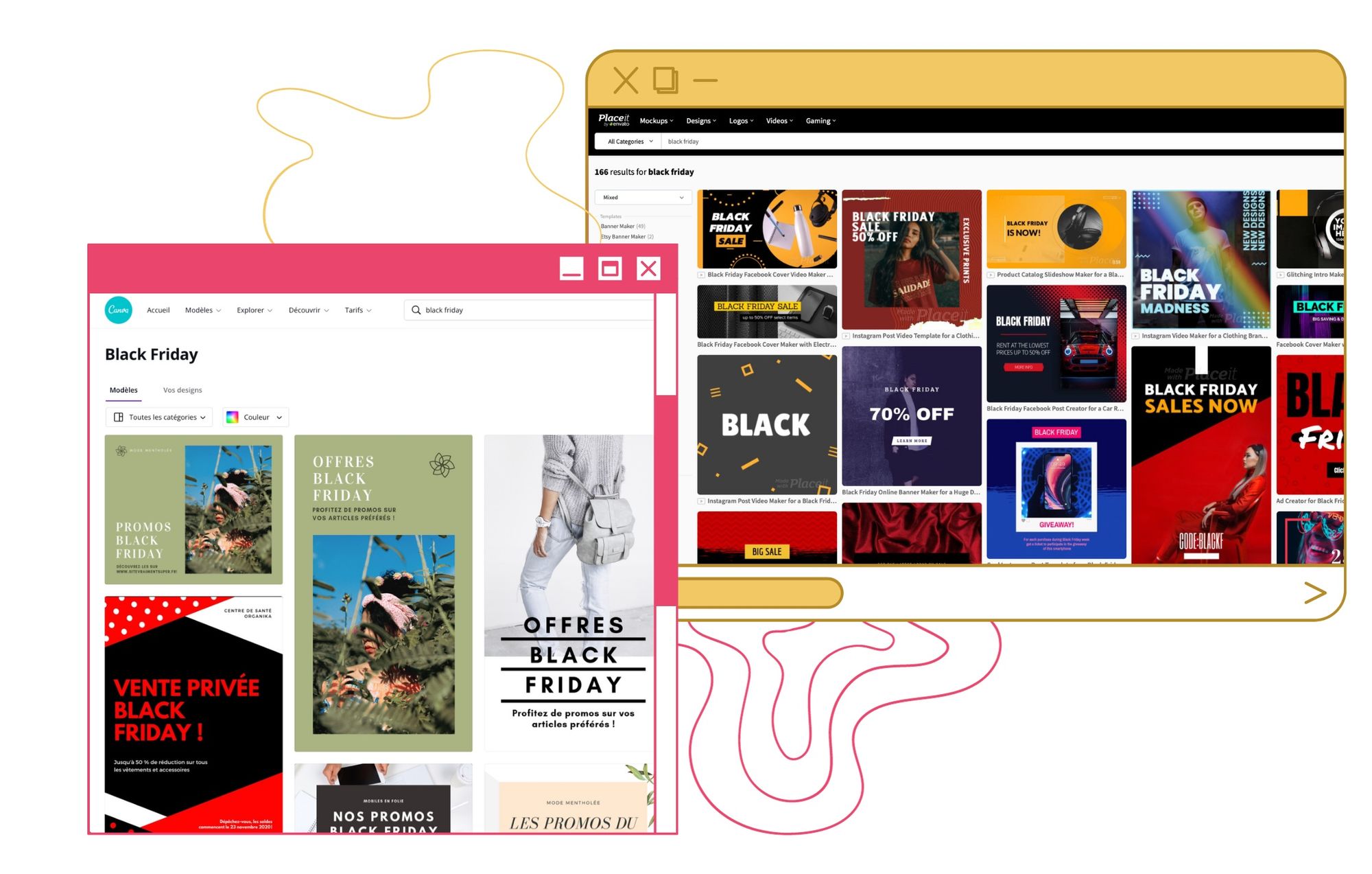 Como todos sabemos, no todos tenemos buen ojo estético: pero afortunadamente, algunos sitios web como PlaceIt o Canva tienen secciones enteras de gráficos personalizables dedicadas al Cyber Weekend... ¡Sólo tienes que ayudarte!
