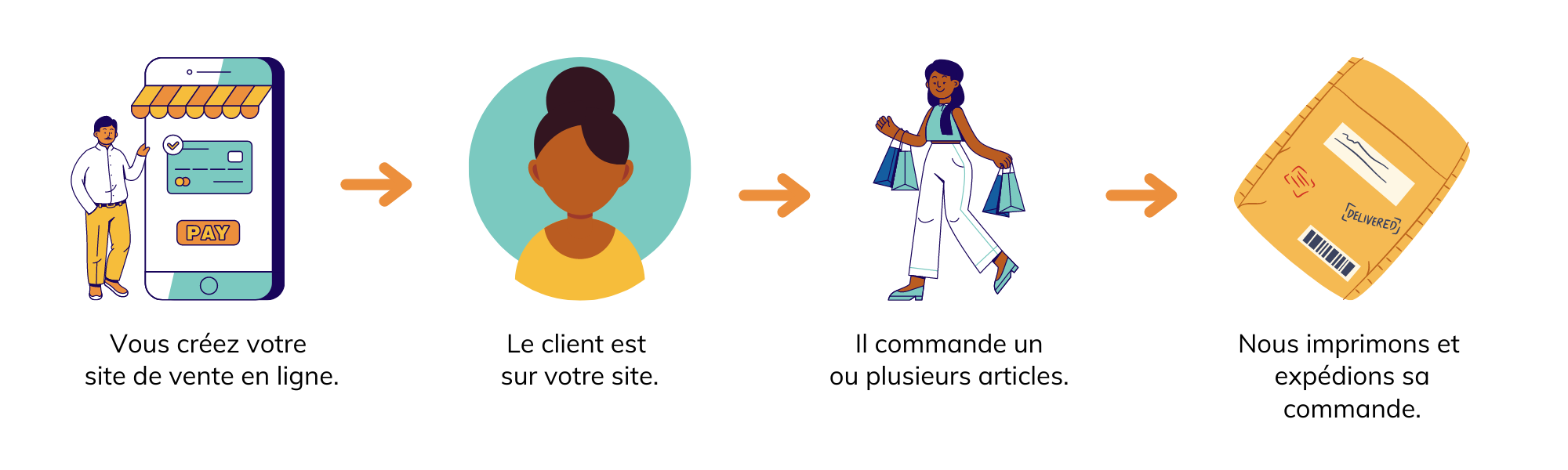 Même s'il est le dernier de la liste, cet avantage est ultra important : pendant que nous imprimons et expédions vos commandes, vous allez pouvoir mettre toute votre énergie et votre temps pour élaborer une stratégie de communication autour de votre boutique et vos produits.