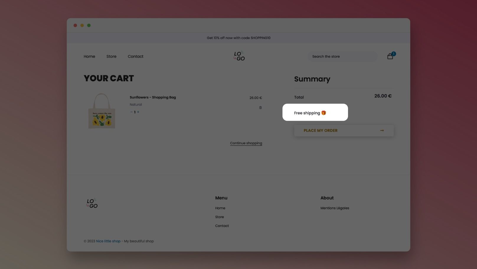 Der Hinweis Kostenlose Lieferung im Warenkorb