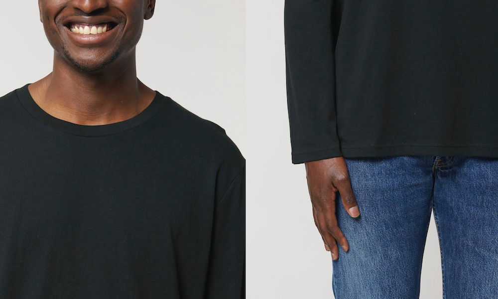 Alle Produkte werden von Menschen gedruckt (alle nett, aber trotzdem menschlich). Wir platzieren Ihre Produkte manuell auf beweglichen Tabletts. Wir sorgen dafür, dass sie immer auf die gleiche Weise platziert werden, aber was die Stärke von Print on Demand ist, ist auch ein heikler Punkt: Es kann leichte Abweichungen bei der Platzierung zwischen zwei Produkten geben.