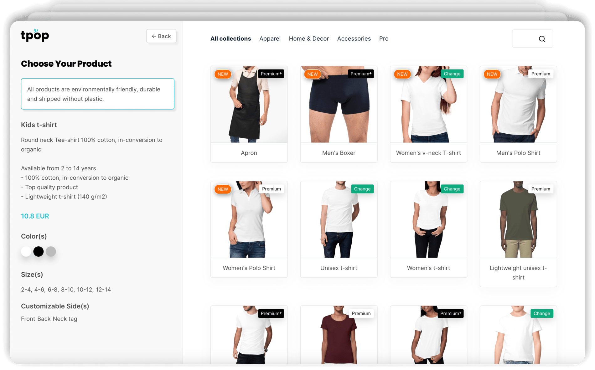 Customize our catalog of eco-responsible products, available in print on demand.