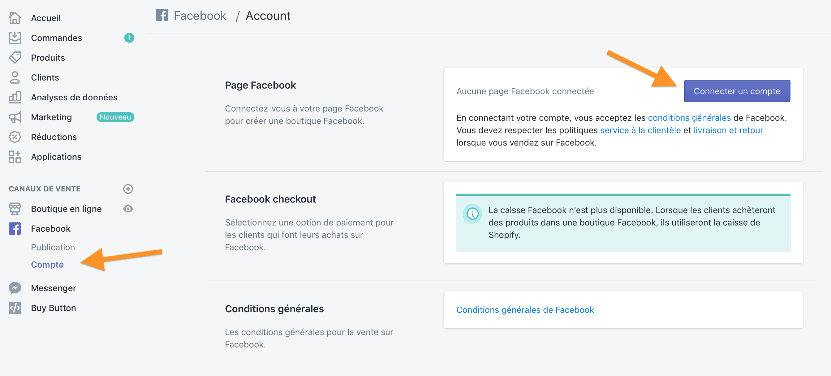 Seuraavaksi sinun on linkitettävä Facebook-tilisi Shopify-tiliisi: